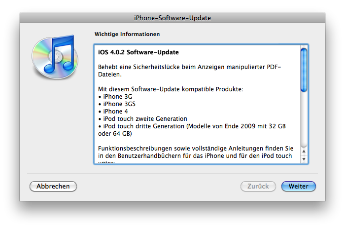 Demnach ist das Update ausschließlich zur Schließung der Lücke gedacht, die den Jailbreak per Website über jailbreakme.com ermöglichte. Wie das Dev-Team über Twitter warnte, sollten alle Jailbreaker vorerst auf das Update verzichten. Musclenerd fügte hinzu, dass zwar kein Baseband-Update im neuen iOS enthalten sei, aber ein Unlock immer vom Jailbreak abhängig ist, der nach dem Update auf 4.0.2 nicht mehr möglich ist.